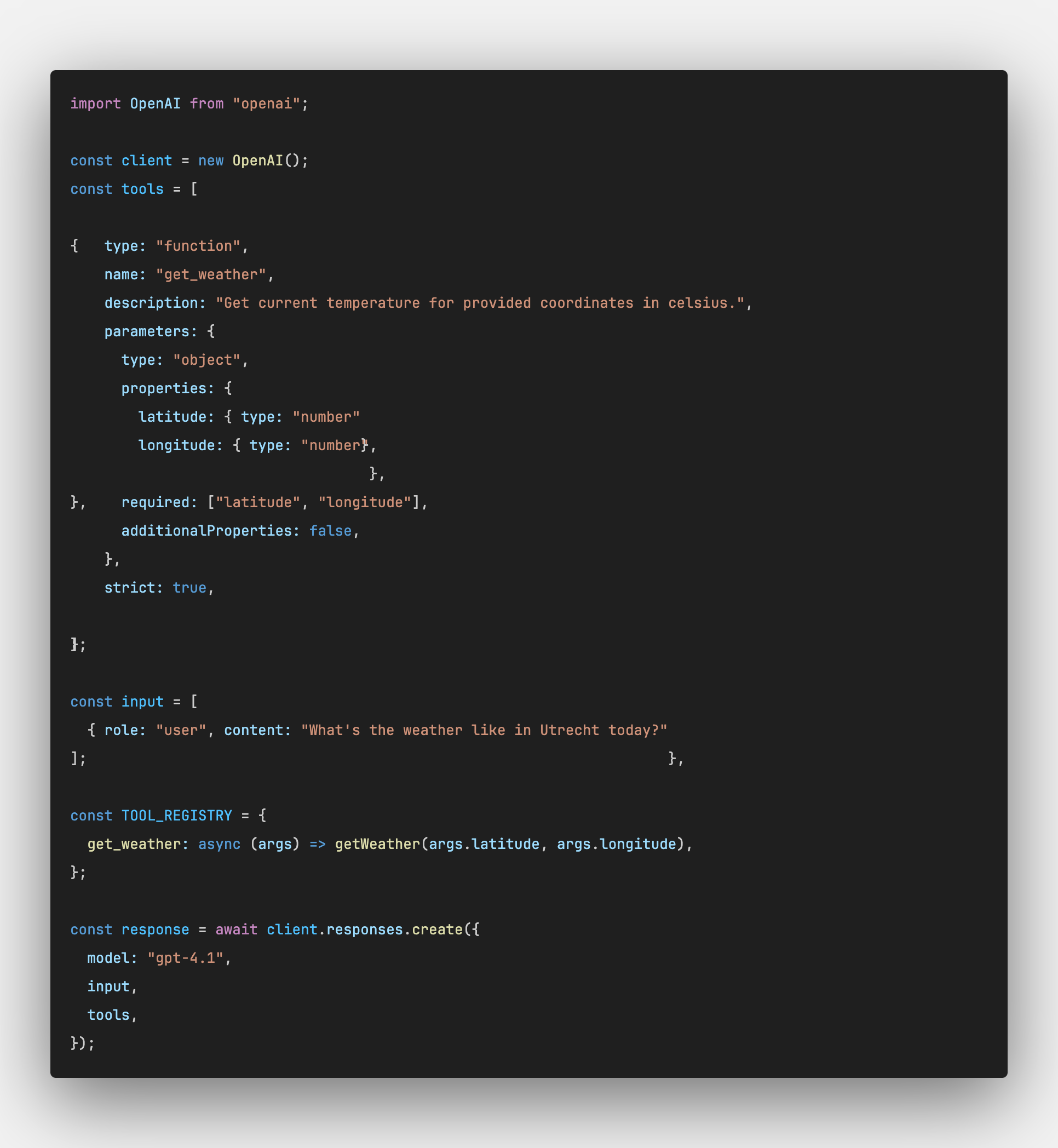Als voorbeeld bouwen we een simpele agent die antwoord geeft op vragen als: “Wat voor weer wordt het vanavond in Utrecht?”