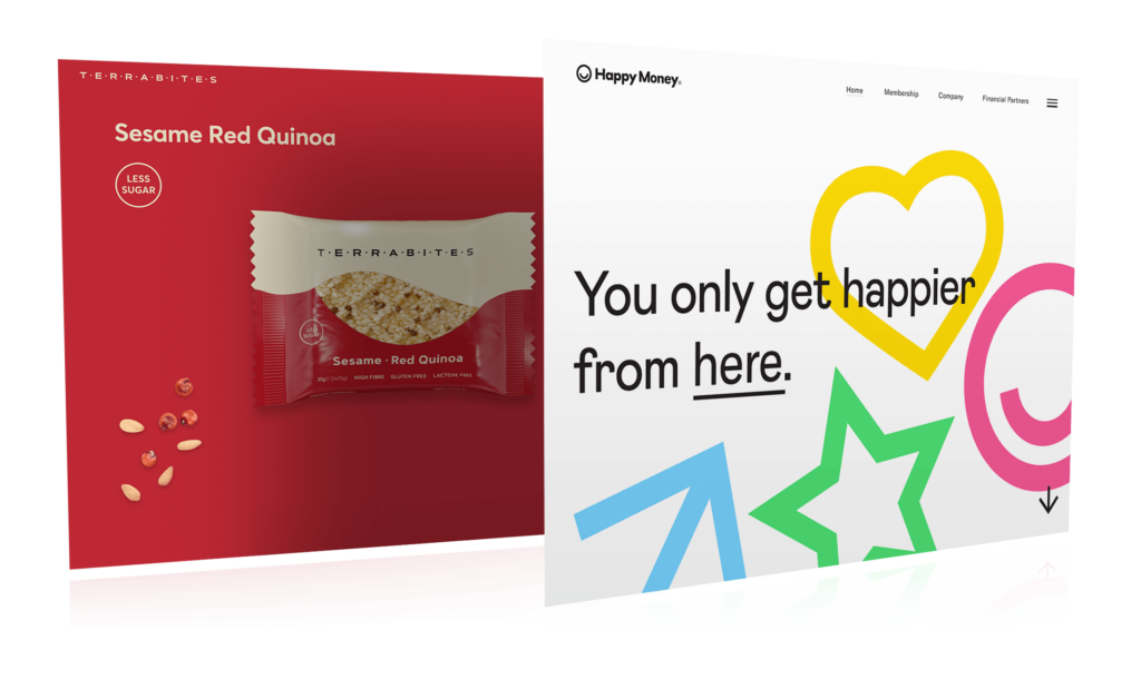 Voorbeeld van websites met sterke kleurcontrasten en met een minimalistische layout.