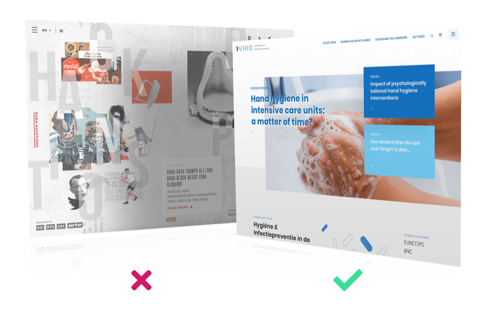 Symmetrisch is zooo saai… tenminste daar lijkt het op aangezien asymmetrische layouts als paddestoelen uit de grond schieten. Deze trend is rond 2017 gestart en groeit nog steeds. Er zijn goede voorbeelden, maar helaas in veel gevallen te vergelijken met een ontploft schilderij van Piet Mondriaan. Het afstappen van een standaard symmetrisch grid is uitdagend en kan succesvol zijn, maar de grens tussen structuur en totale chaos is erg dun. We kunnen dit het beste toelichten met een goed en natuurlijk een minder goed voorbeeld.