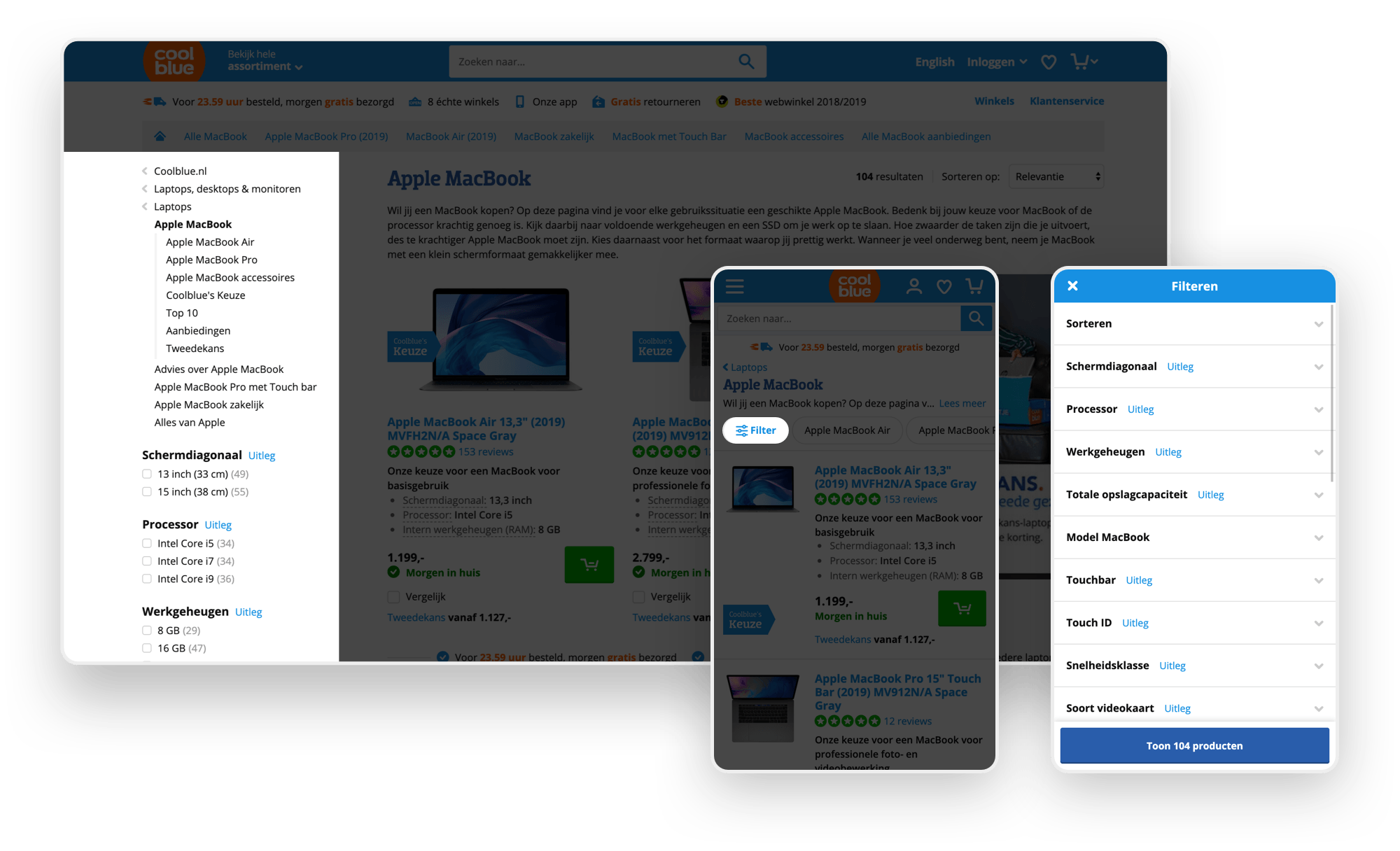 Voorbeeld filtering Coolblue (desktop & mobiel).