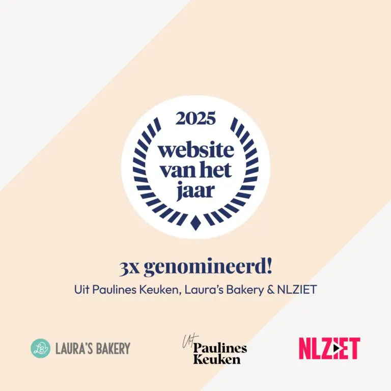 Ook dit jaar zijn drie door Stuurlui gebouwde websites genomineerd voor de verkiezing Website van het Jaar 2025: Uit Paulines Keuken, Laura’s Bakery en NLZIET. Drie sterke platforms die elk op hun eigen manier laten zien wat goed webdesign en techniek kunnen betekenen.